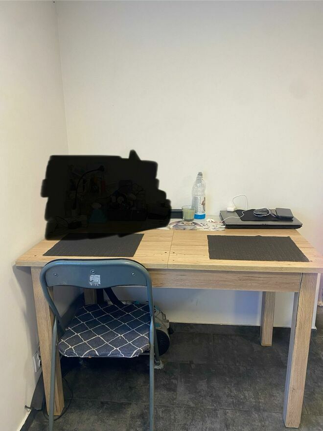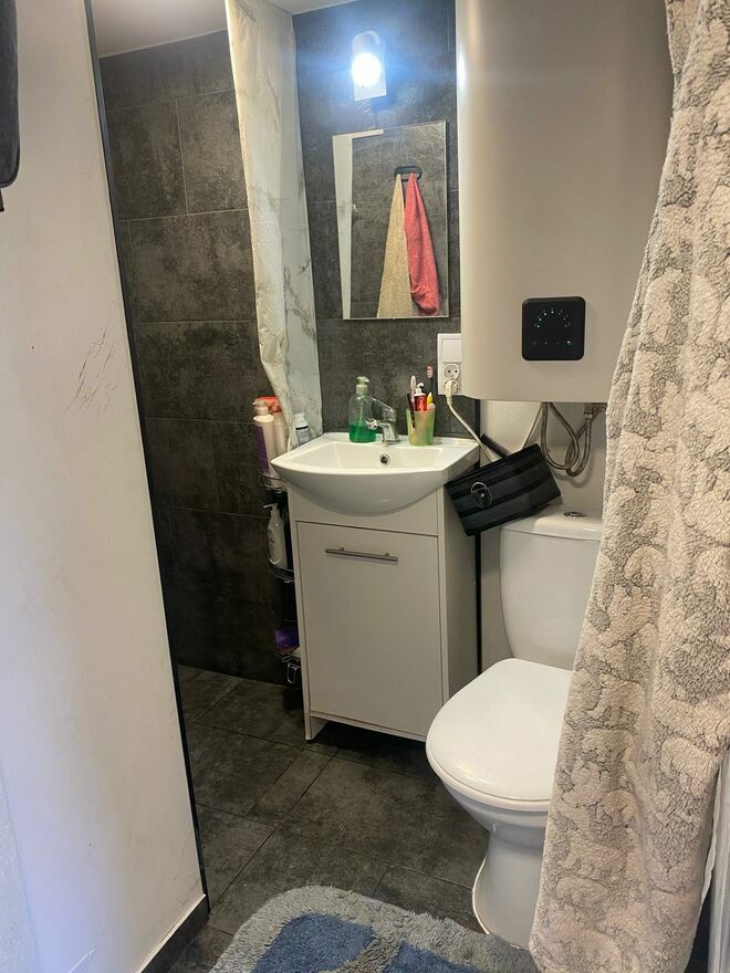 Składa się z salonu z aneksem kuchennym z oknem i miejscem na szafę lub półki.