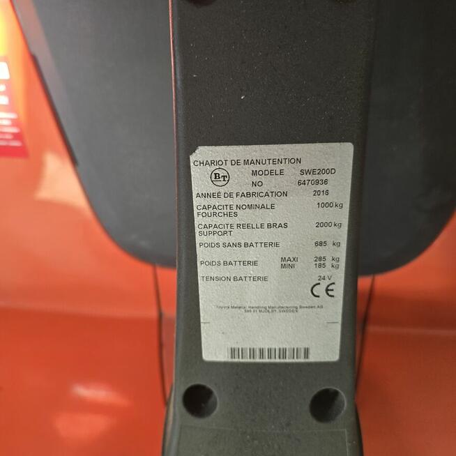 Używany paleciak elektryczny z niskim masztem i wstępnym podnoszeniem wideł BT SWE 200d ( Toyota SWE 200D) ...